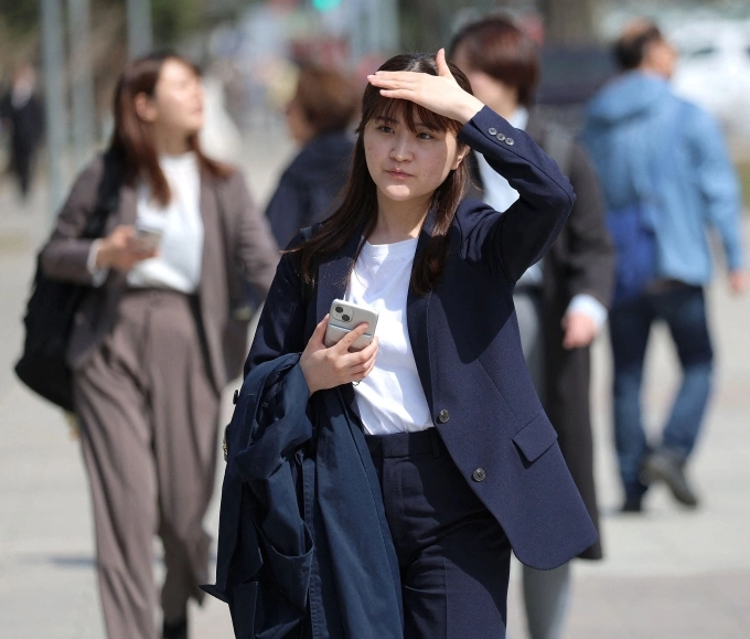 Một phụ nữ trẻ Nhật Bản đi bộ trên đường phố Sapporo, Hokkaido, ngày 8/4/2024. Ảnh: AFP